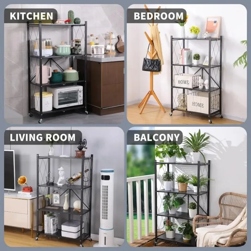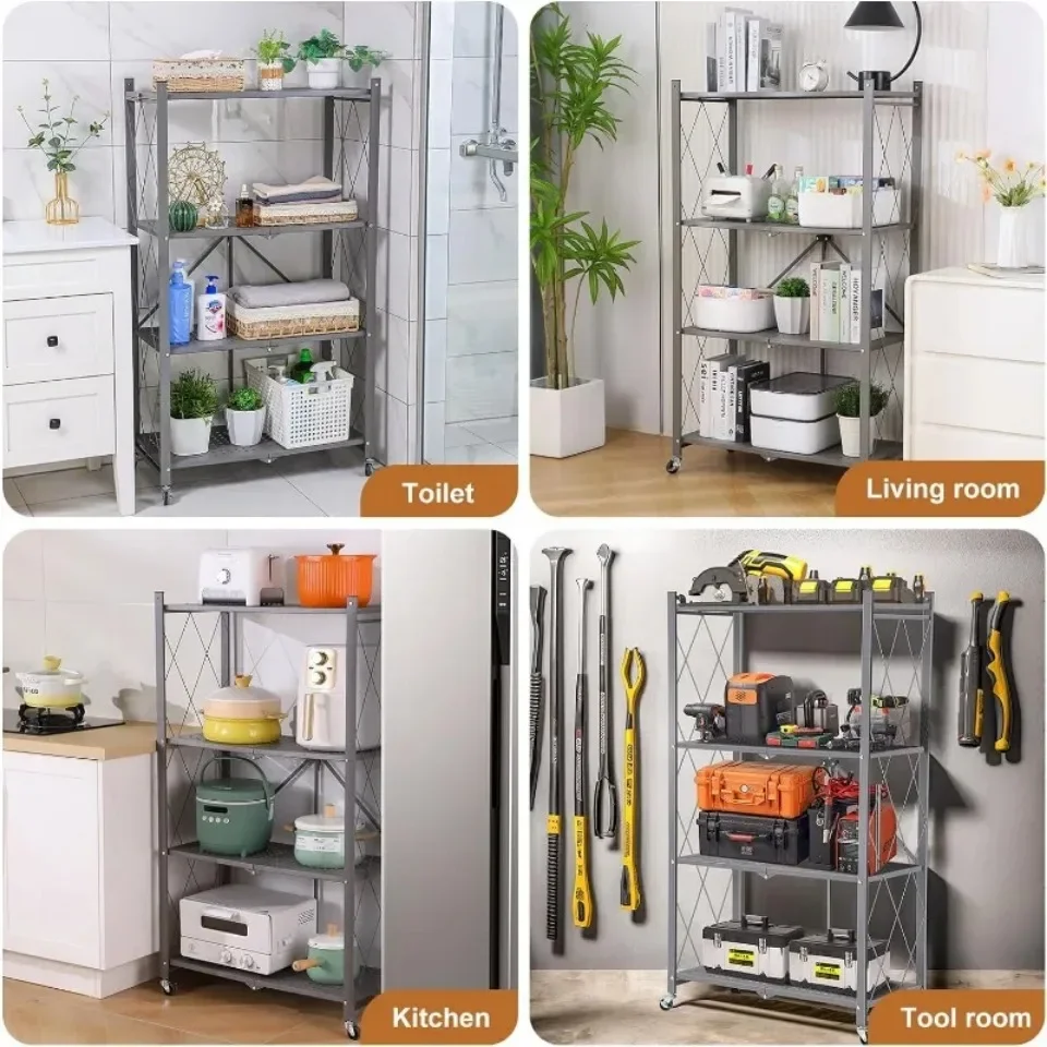 Étagère Métallique Pliable Multi-Usages – Rangement sans Montage pour Cuisine, Salon ou Bureau