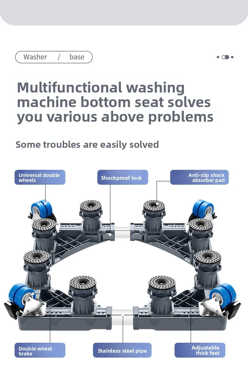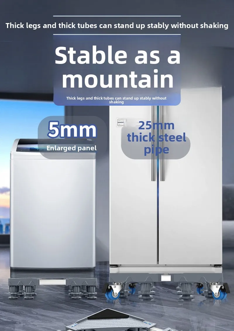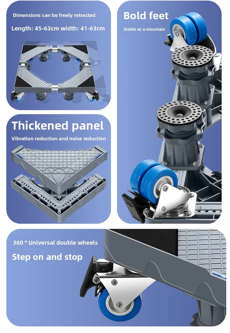 Support Universel en Acier Inoxydable pour Machine à Laver et Réfrigérateur – Base Mobile avec Frein